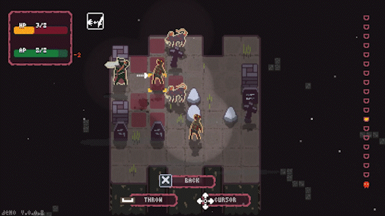 O foco, segundo o próprio Thiago, é aprender a combinar as mecânicas e achar a melhor solução para derrotar os inimigos de cada fase. São oito pontos de stamina, sendo que arremessar a espada gasta dois pontos, um dash simples gasta três e o pulo, quatro. Andar livremente no cenário recupera um ponto por turno, então você também precisa saber fugir nos momentos certos para preparar a melhor sequência de ataques possível.